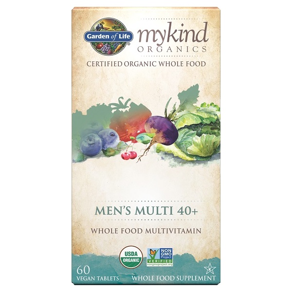 Finally, there’s a whole food multi from real, nutritious foods that’s Certified USDA and is Non-GMO Project Verified and is specifically formulated for the needs of men 40+—mykind Men’s Multi 40+. Made from over 30 powdered fruits, vegetables and herbs, mykind Men’s Multi 40+ provides 20 vitamins and minerals with 16 greater than 100% Daily Value. It also provides 1000% Daily Value of Vitamin B-12 in Methylcobalamin form—a highly absorbable, active, natural form of B-12, for extra energy. Men’s Multi 40+ also boasts folate and manganese for prostate health. Men’s Multi 40+ provides targeted levels of chromium for healthy metabolism, and a certified prostate and heart support blend from pomegranate, pumpkin, turmeric and tomato. Men’s Multi 40+ also has fruits, veggies and herbs such as lemons, apples, basil, red cabbage, celery, tomatoes and many other real foods, to give men over 40 the nutritional “punch” they need in a natural form—and all of them are Certified Vegan, Certified USDA and Non-GMO Project Verified.