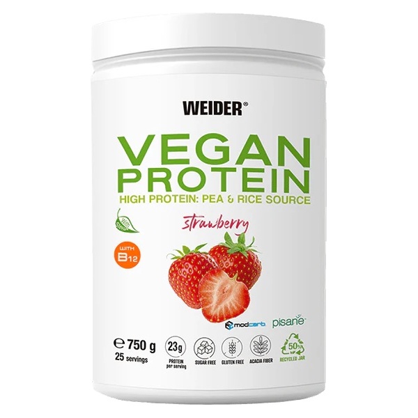 Weider Vegan Protein, Strawberry – 750g. Weider Vegan Protein – Pea and Rice Isolate for Muscle Growth Vegan Protein is an excellent choice if you’re seeking top-quality plant-based protein with a delicious taste. It provides nutritional value comparable to whey protein and suits all vegan diets.